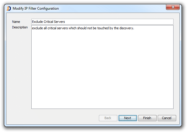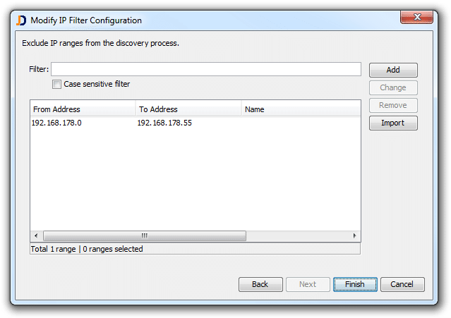 When finishing the wizard, a new filter has been defined which excludes globally all devices having IP addresses within the exclusion range.