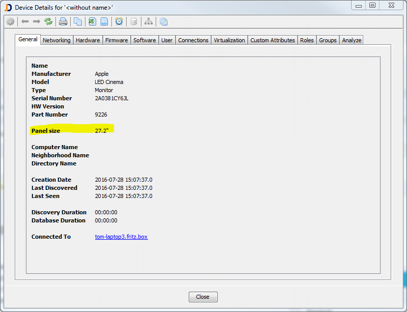 we have added some more nice features during the last couple of weeks. Besides adding new devices, we have implemented the discovery of virtual machines which are currently offline. This feature is implemented for VMware and Citrix XenServer first. Over time, we will add this feature for the remaining virtualization technologies. We also improved the discovery of displays attached to computers. Besides getting basic monitor information, JDisc Discovery determines the panel’s physical size.