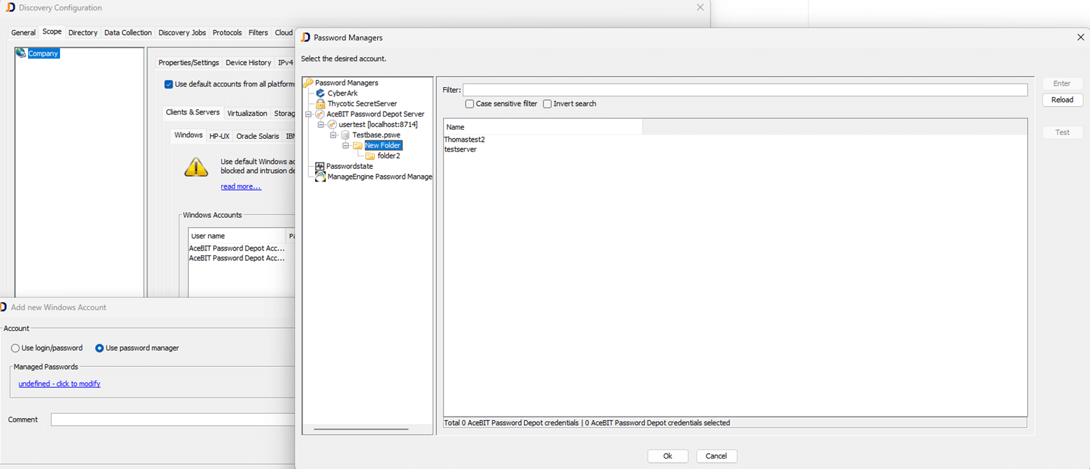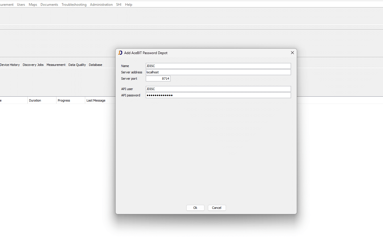 As in other password managers integrated in the past, your passwords are no longer stored within JDisc Discovery’s database but stay in AceBIT Password Depot Server. The JDisc Discovery only requests the passwords from AceBITPasswordDepotServer via its Rest API when needed for device scans.