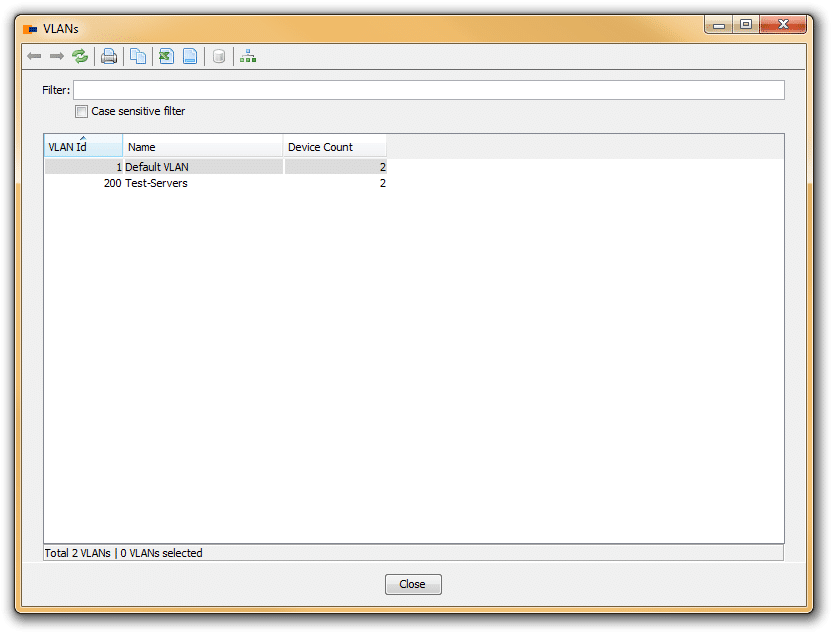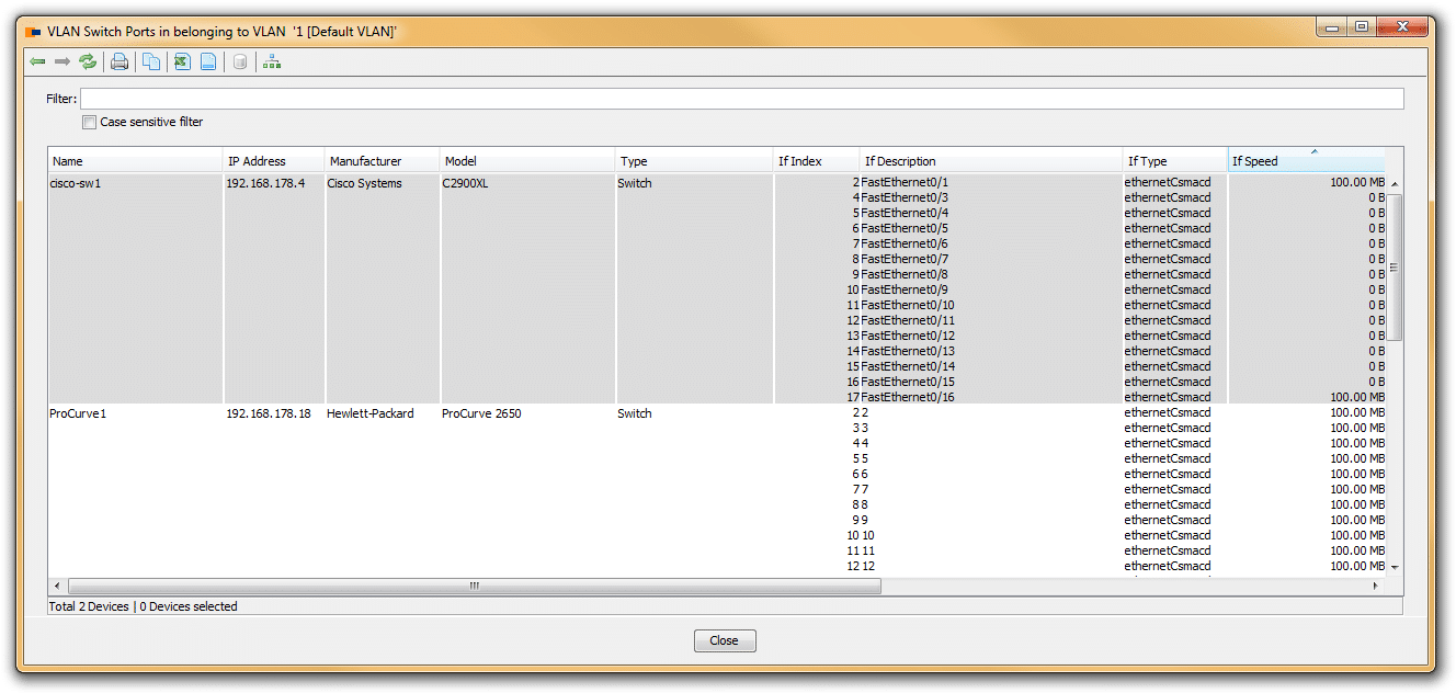 Doubleclick on a VLAN and open a new report that lists all switches together with the switch ports that belong to the selected VLAN.