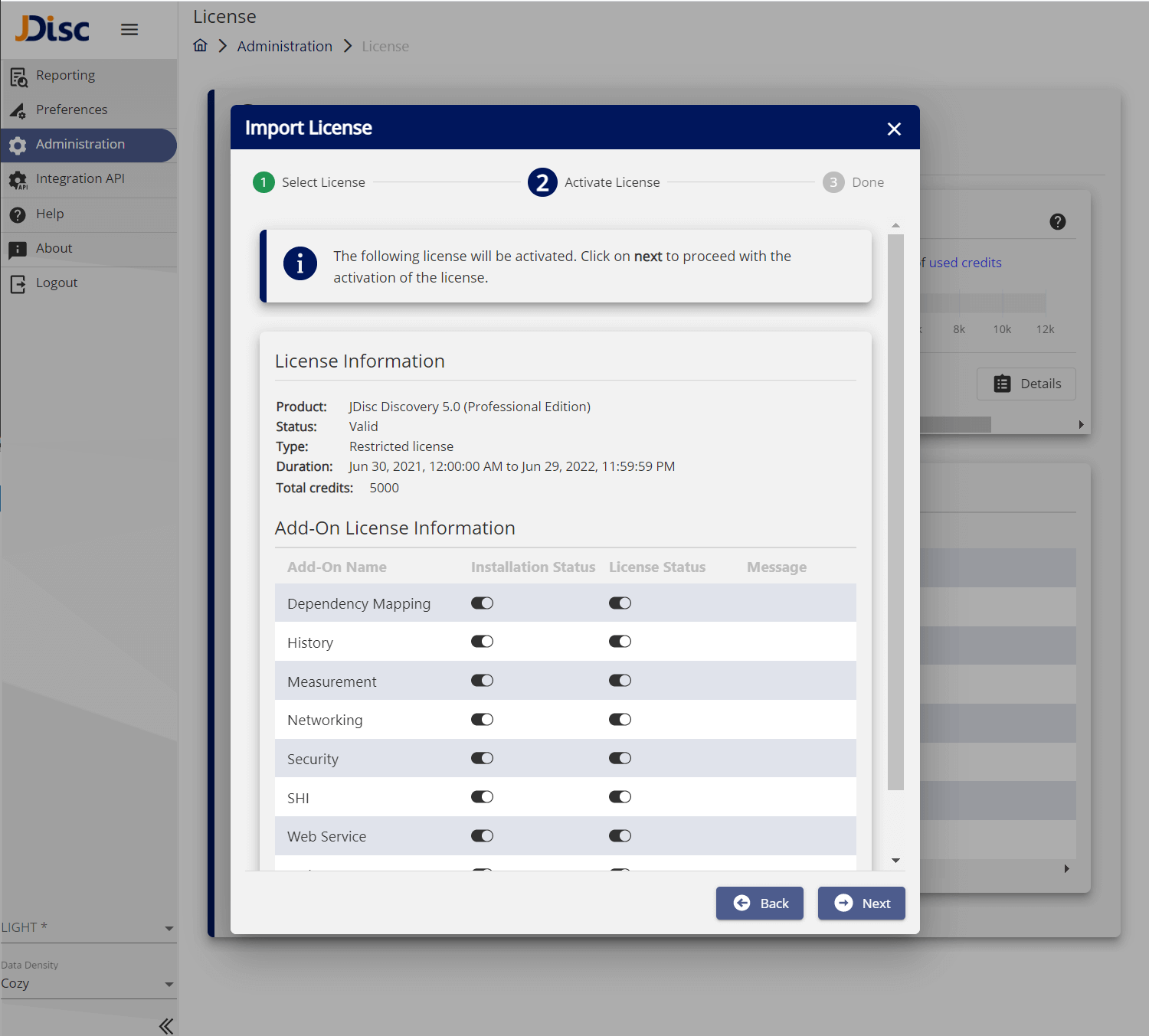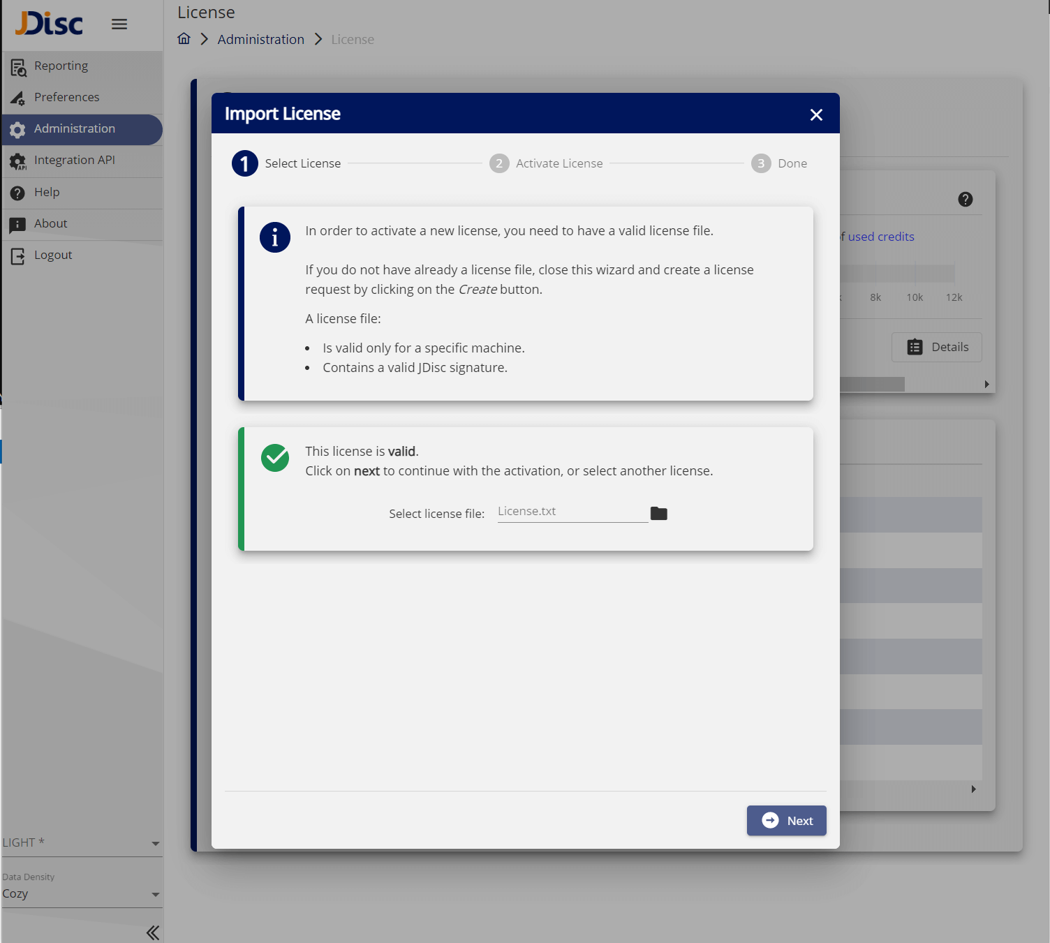 the management of a JDisc Discovery license was until now a manual and error-prone process. It required a copy of a specific file to a specific JDisc Discovery installation directory. The license file was validated only after the procedure was done. Unfortunately, in some cases, the file was wrong, or the copy location was wrong, which led to confusion, multiple support tickets and eventually it was preventing you from using the product.